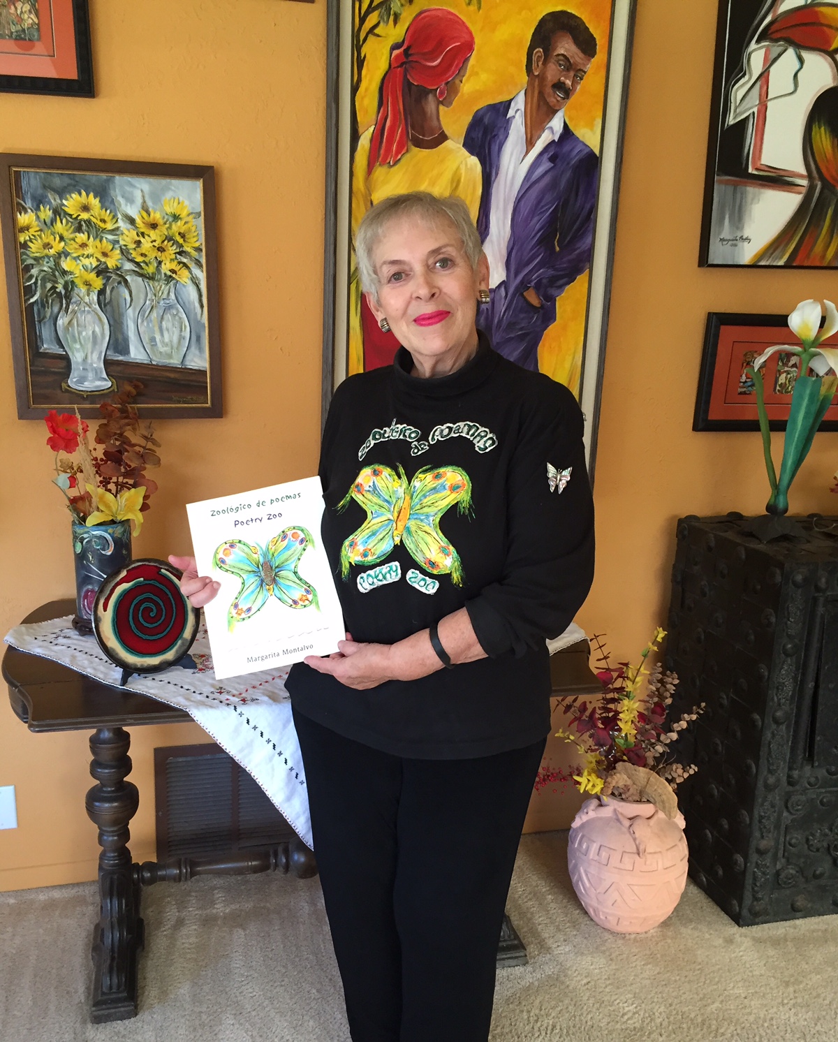 Margarita Montalvo nació y se crió en Puerto Rico, la Isla del Encanto y reside en Nuevo México, la Tierra del Encanto. Es traductora certificada e intérprete judicial en el estado de Nuevo México. Su entretenimiento es pintar. El libro bilingüe de fábulas poéticas Zoológico de poemas / Poetry Zoo, escrito, traducido e ilustrado por ella, ganó el Latino Book Award en 2005 en la categoría de “Best Bilingual Picture Book”. Con su esposo, Braulio Montalvo, escribió el libro: Hilachas —Personajes inadvertidos y sucesos olvidados de un pueblo chiquito: Aguadilla, Puerto Rico.