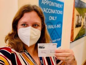 [Jennifer Santiagos after getting the first dose of the COVID-19 vaccine. Picture courtesy of Jennifer Santiagos.]