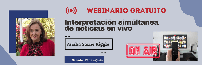 El próximo 27 de agosto los invitamos a participar del 3.er webinario gratuito exclusivo para los miembros de la ATA SPD a cargo de Analía Sarno Riggle, quien tiene una vasta experiencia como traductora de la Embajada de los Estados Unidos en Buenos Aires y como intérprete en los Tribunales a nivel estatal (California) y federal e intérprete simultánea de noticias de TV.