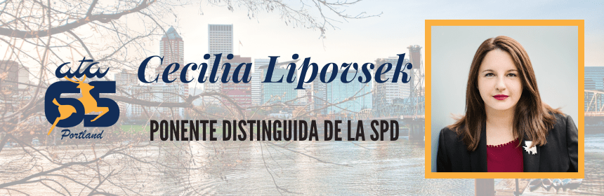 La División de Español (SPD) de la American Translators Association (ATA) tiene el honor de contar con la distinguida participación de Cecilia Lipovsek, quien ofrecerá dos excelentes ponencias durante el 65.º Congreso Anual de la ATA, a celebrarse en Portland, Oregon del 30 de octubre al 2 de noviembre.
